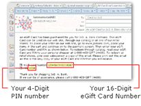 Gently remove the metallic strip on the back of your gift card to reveal both the card and the access numbers.